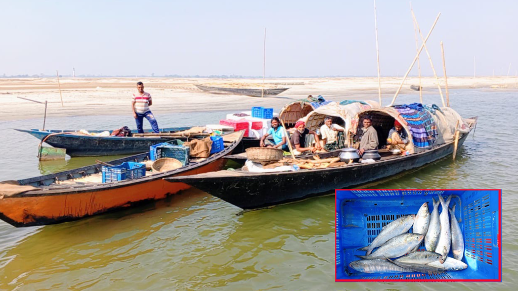 নিষেধাজ্ঞার মধ্যেও পদ্মার চরে ইলিশের বাজার